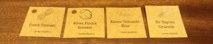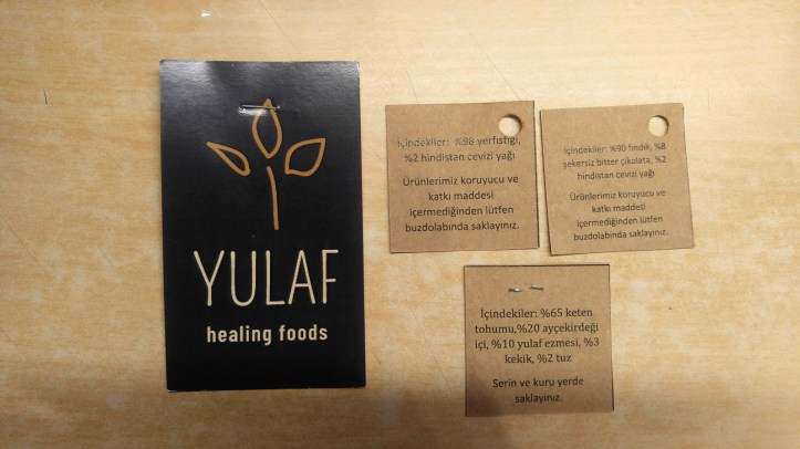 Bir gıdanın tam gıda olup olmadığı da dikkat etmeye başladığım şeyler arasında. Kendimce bunun en basit yolu içindekilere bakmak. Gıdanın içindekiler yumurta, süt, kakao, un gibi ne olduğunu anladığım şeyler mi yoksa ne anlama geldiğini anlamadığım kısaltmalar, kimyasal isimler, veya birşeylerin aroması, özütü, muadili gibi şeyler mi? YULAF’ın torbasını açınca içinden çıkan yiyeceklere bakarken gayri ihtiyari ilk olarak “içindekiler” yazıyor mu diye baktım. Ve Evet!! Yulaf’ın yaratıcısı sevgili Gizem’in ürünlerine eklediği küçücük etiketlerinin arkasını okurken mest oldum! Fındık, fıstık, keten tohumu, hindistan cevizi yağı, kuruyemişler, ayçekirdeği içi, her biri tam gıda, harika harika!